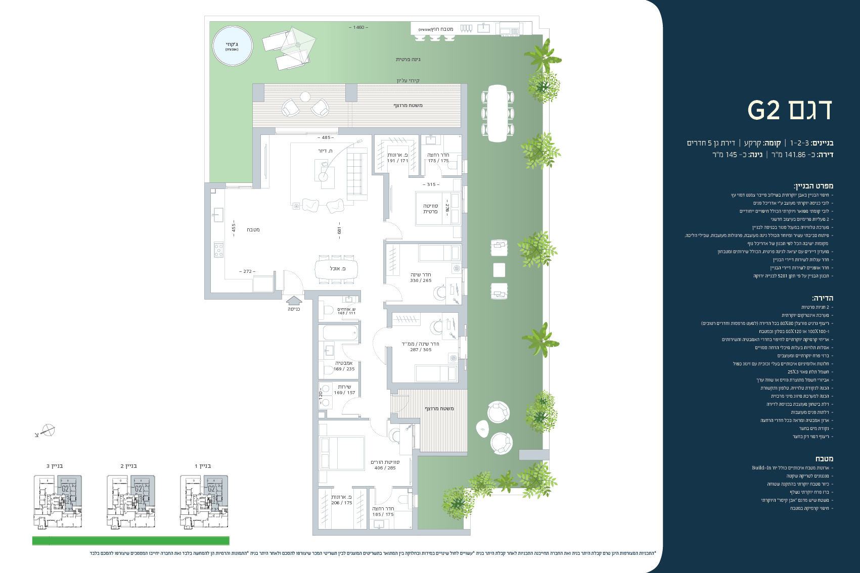 - פיתוח סביבתי עשיר ומיוחד הכולל גינה מעוצבת, עצי צל וטיילת פרטית